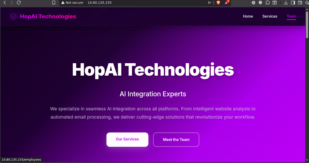 A TryHackMe write-up covering HopAI web enumeration, DNS zone transfer abuse, mail workflow abuse, and model prompt extraction.